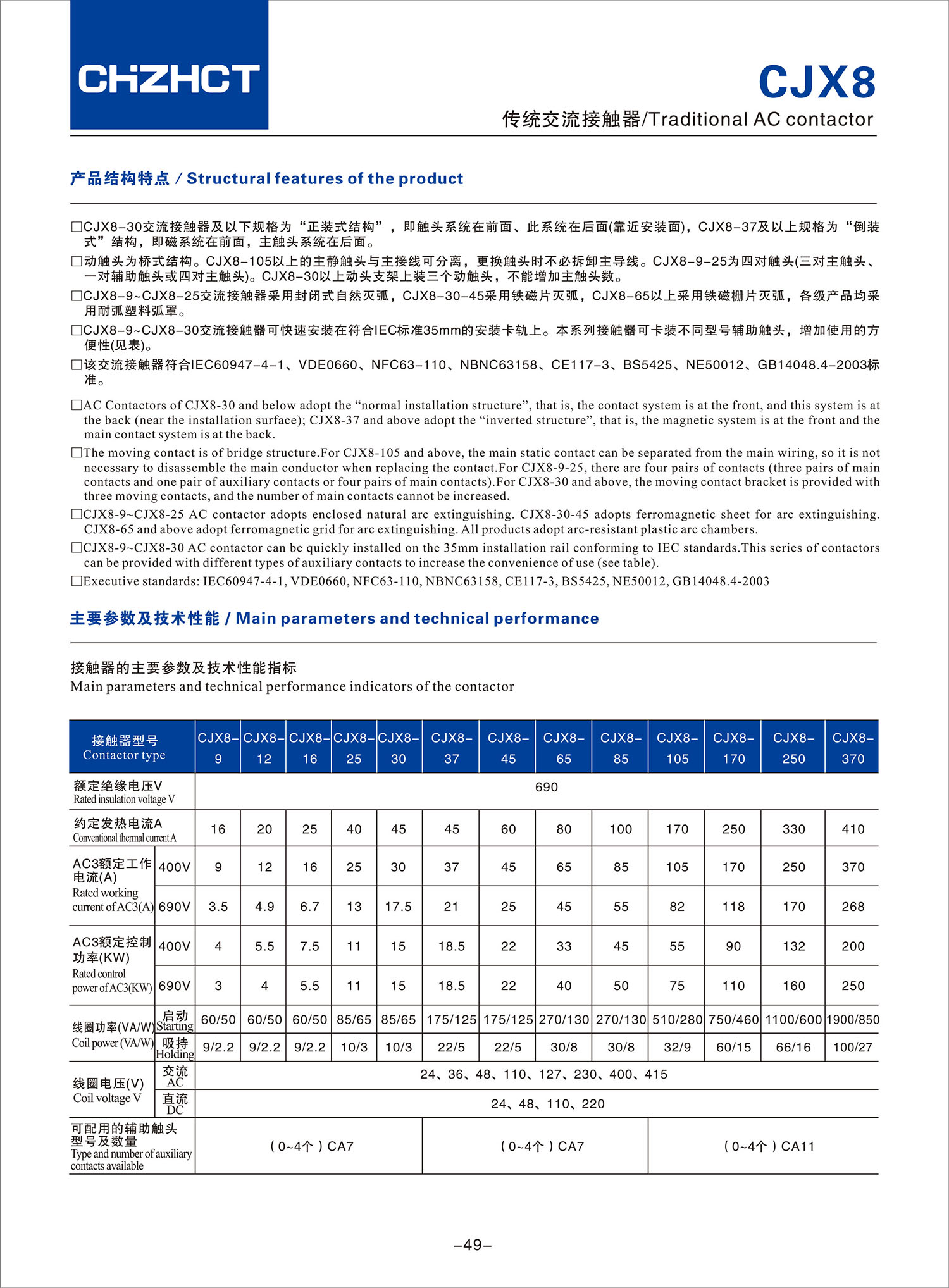 CJX8传统交流接触器产品说明书