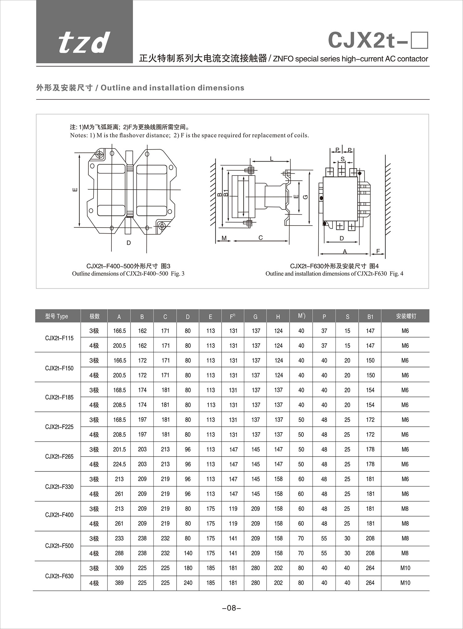 CJX2t-F 正火特制系列大电流交流接触器产品说明书